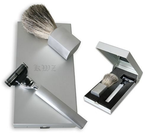 Travel Shaving Shave Set Mach 3 Razor, with Badger Brush,Mirror in Silver Plated Case Review