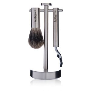 To achieve an old school, old fashioned classic shave with a modern edge, this exquisite razor and brush duo reminiscent of 1940's elegance was created exclusively for Anthony For Men and is compatible with the Mach 3 Blade by Gillette. The shave set includes a solid, classic stand, sleek razor and a luxurious badger hair brush; all plated with "Nickel" of the highest quality. Using a shaving brush helps lift the beard hairs away from the skin giving you an easier and more comfortable shave. Remember to always replace the blade after three to four uses to ensure a smooth shave.