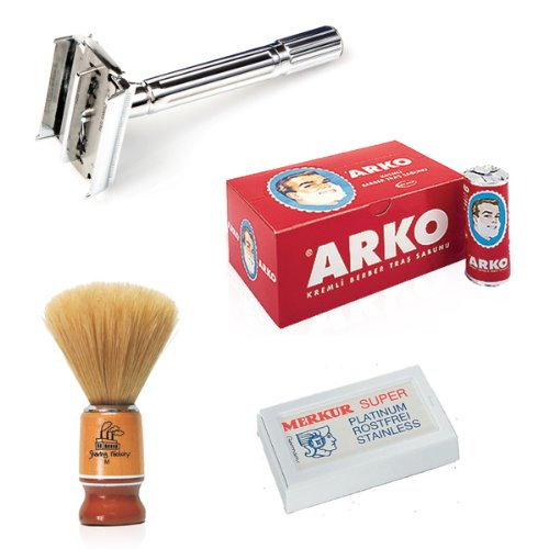 SF400-Shaving Factory DE Safety Razor, Hand Made Shaving Brush, Arko Shaving Soap and 10 Merkur Platinum Double Edge Razor Blades. Great Valentines Day Gift Set. Review