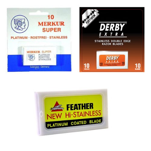 10 Derby & 10 Merkur & 10 Feather Double Edge Safety Razor Blades Review