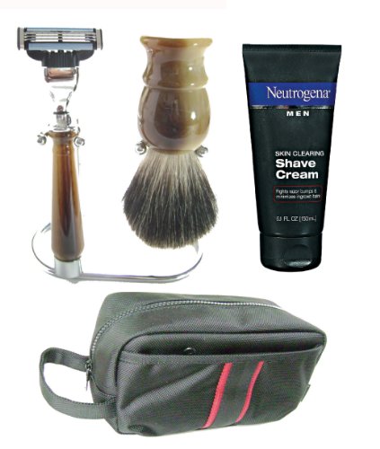 Badger Brush Mach 3 Razor with Stand Shaving Cream Shaving Set Brown Review