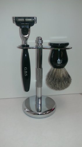 Shaving Set 3 Pc with Black Mach 3 Razor, Pure Badger Brush and Chrome Stand From GBS Feature